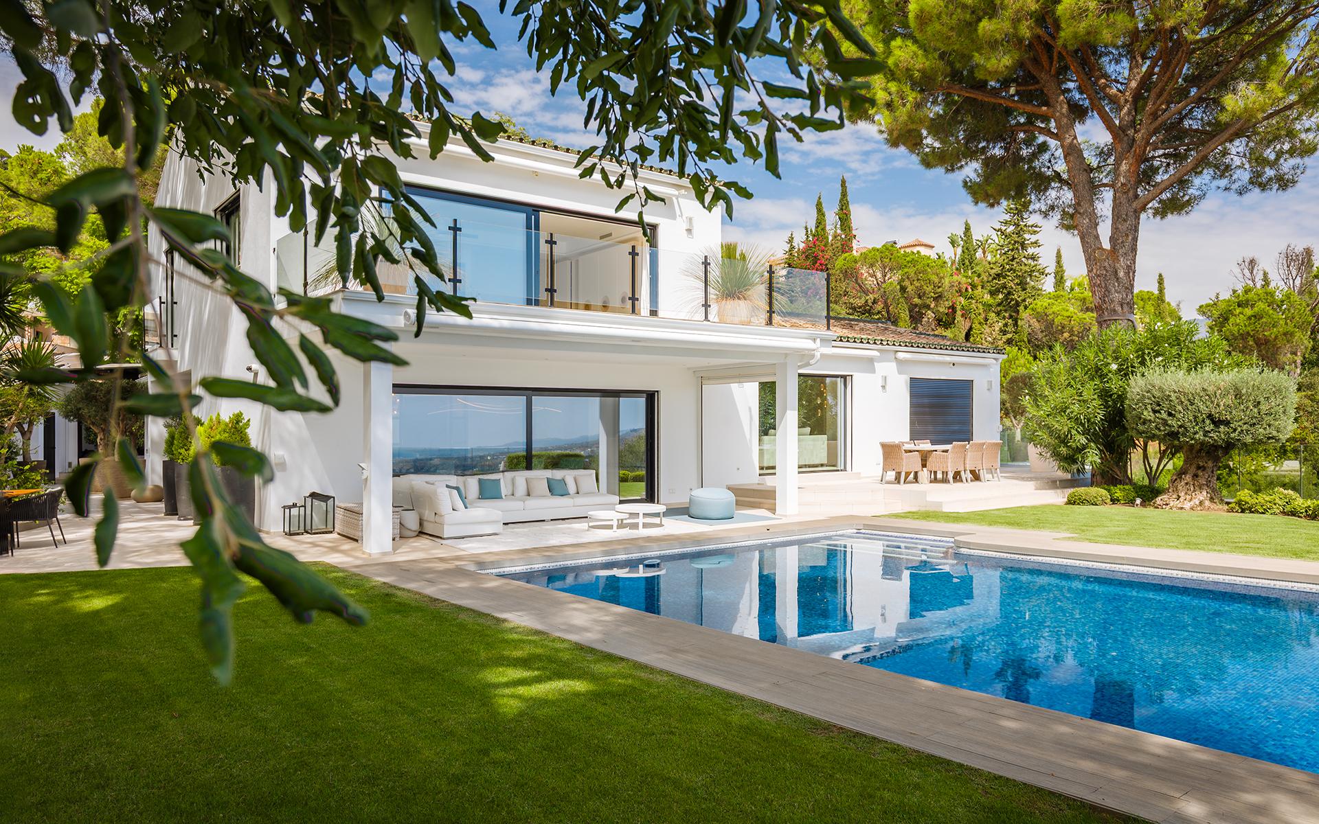 Set within the prestigious residential estate of El Madroñal in Benahavís, this elegant villa offers the perfect blend of privacy, nature, and breathtaking panoramic views of the mountains and Mediterranean coastline.
