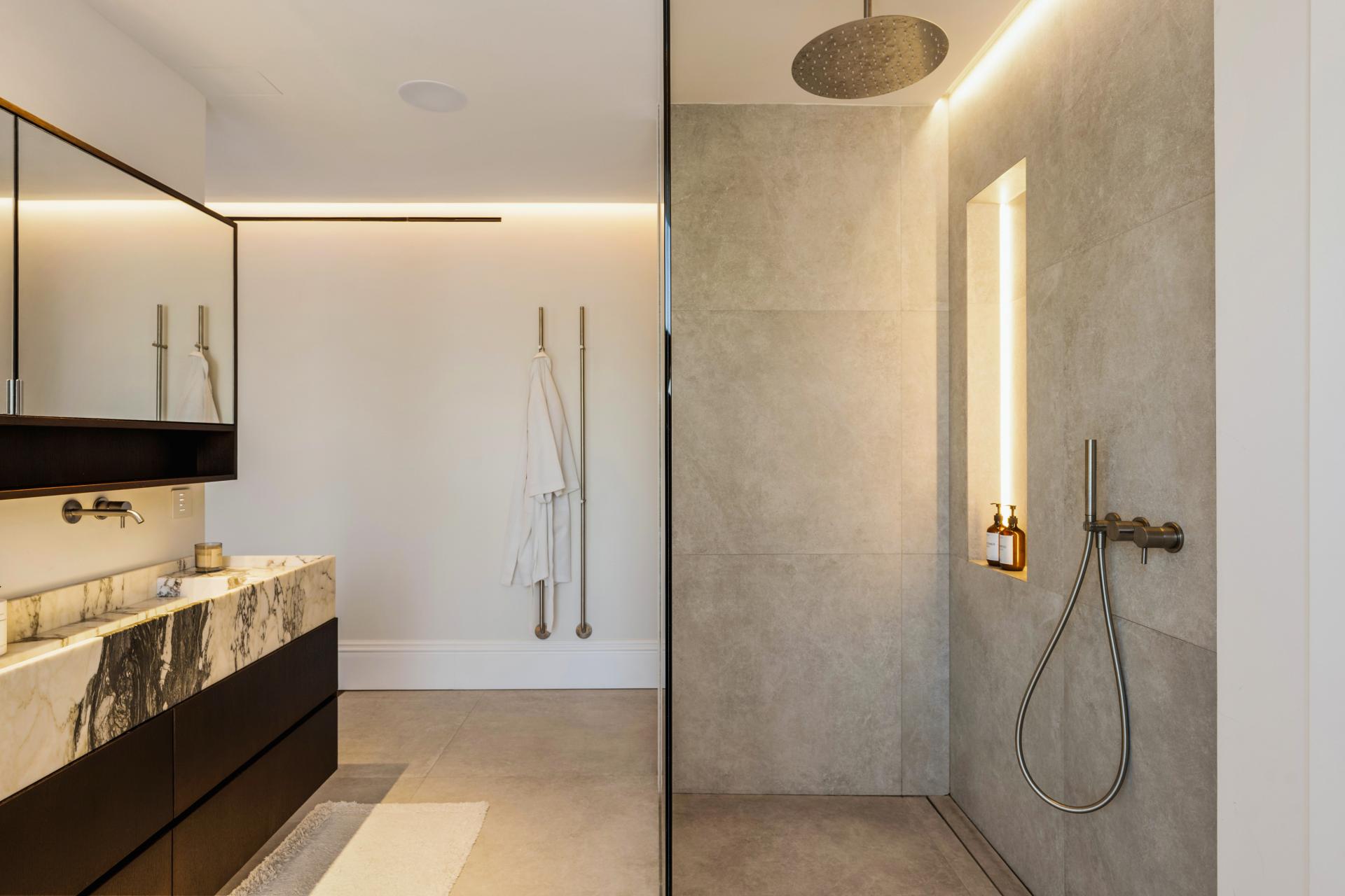 The outdoor areas have been designed to embrace a true indoor-outdoor lifestyle. An elegant outdoor kitchen and bar area accompanying a magnificent heated saltwater swimming pool, complete with a mirrored overflow edge that creates a striking visual effect.