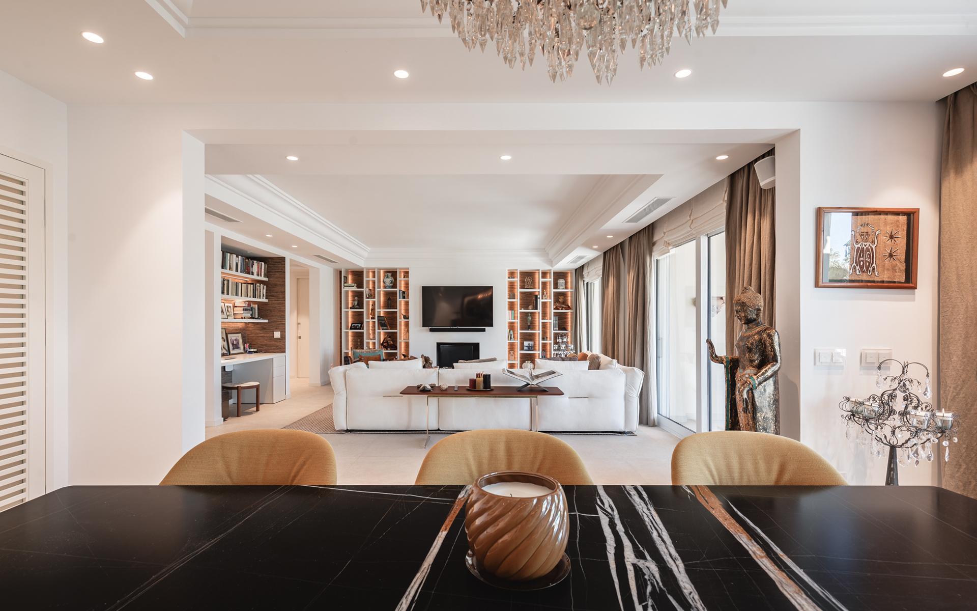 La propiedad cuenta con una suite principal con vestidor, baño en-suite y sauna, junto con dos dormitorios adicionales, uno de ellos en-suite. Otras comodidades incluyen un amplio salón y comedor, un aseo de invitados, varias terrazas grandes, una cocina moderna totalmente equipada, acceso privado por ascensor, calefacción por suelo radiante, cortinas eléctricas, mosquiteras en todas las puertas, sistema de domótica Gira y aparcamiento subterráneo para dos vehículos, todo ello integrado con avanzados sistemas de domótica.